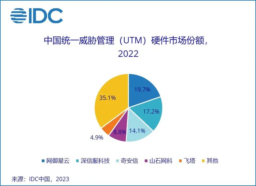 IDC界说下的网络安全硬件商场分别由一致要挟办理 (UTM)、依据UTM渠道的防火墙 (UTM Firewall) 、安全内容办理(SCM)、侵略检测与防护 (IDP)、虚拟专用网(VPN)、传统防火墙 (Traditional Firewall) 构成。2022年我国网络安全硬件商场的要害厂商体现如下: